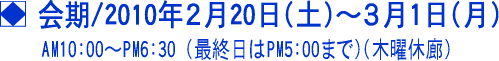 八代先生来廊日 2月20日(土)・21日(日)・27日(土)・28日(日)・3月1日(月)