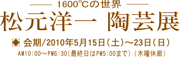 赤松の薪を8昼夜焚きつづけ、穴窯の温度は1600℃(通常は1300℃前後)。 一ヶ月待って窯を開く。 先人のやった事のないリスクの高い世界に挑む 松元さんの作品は、長い陶芸の歴史の中で、表現されてこなかった何かがある。