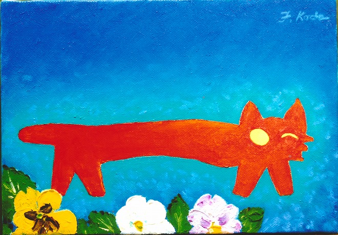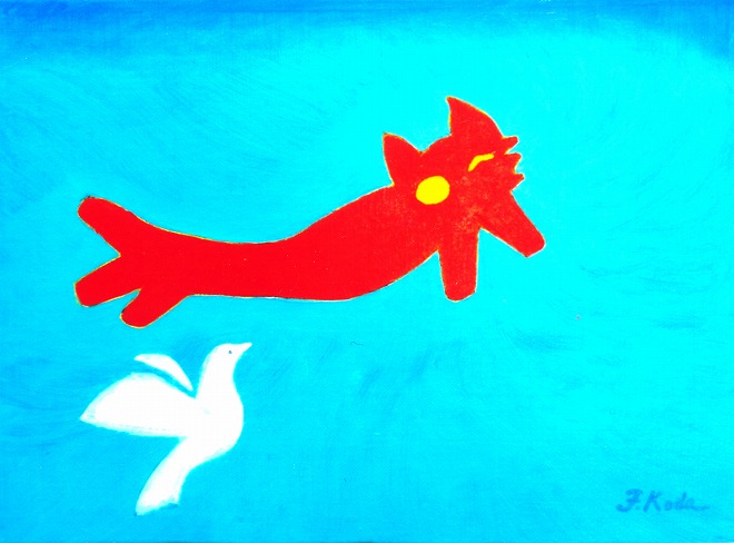 作者の名前にあやかり元気と福を貰えそうである。 とても低価格の油絵です。