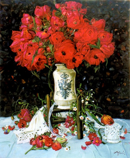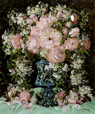 由比さんの描く花や風景は日本的な油絵とは少々異なる。優美で豊穣な色彩を軽やかなタッチで描くので、とてもお洒落で魅惑的である。