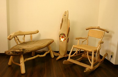 八代 繁広 流木家具 ベンチ・Seaガラスランプ・ロッキングチェア