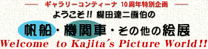 一般的に illustration は図解、説明などと訳され、美術界ではイラストレーターから出発した画家は、その人気度とは関係なく、とかく疎外される風潮がありますが、梶田画伯の作品は色彩が美しく科学的に精緻なだけでなく何とも云えない暖かさがあって、空想力に満ち作品全体としても非常にすぐれております。大海原をゆく帆船の絵は勇気を与え、夢を育むものとして欧米では昔から愛好されてきました。力強い機関車は懸命に働く父親のイメージです。海洋画の巨匠梶田画伯の力作が揃った本展覧会を、是非ご家族連れでお楽しみ下さい。