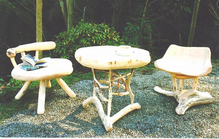 流木と対話しながら、家具やオブジェを創り、今や人気作家である。