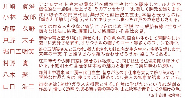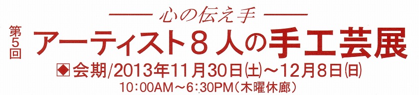 毎年ご好評の手工芸展の季節となりました。8人のアーチスト達が心をこめて創りました。