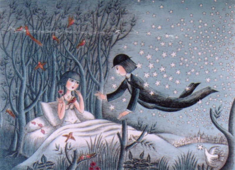 夢 青空 小鳥 恋 優しさ 祈り ☆ 愛 心 メロディー 幸せ 海 虹 天使 月 花 希望 など ペイネの絵には宝石の様に耀く素晴らしい言葉がちりばめられています。それ故に、人々は幸せな気分になるのでしょうか。